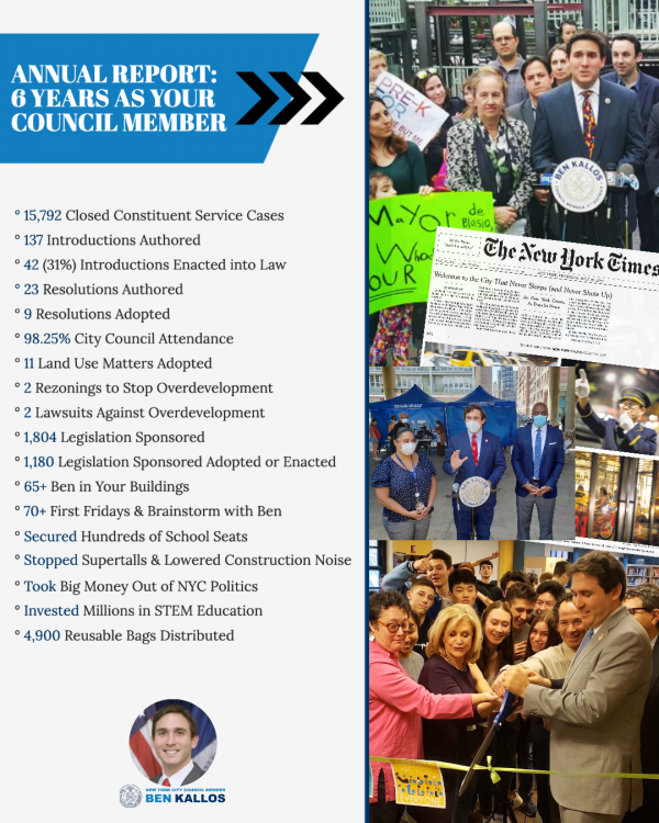 While this list is extensive, it is by no means exhaustive. With just under 18 months left in my final term in the Council, I hope we can use the precious time we have left to continue our collaboration. Read the full report at BenKallos.com/newsletter