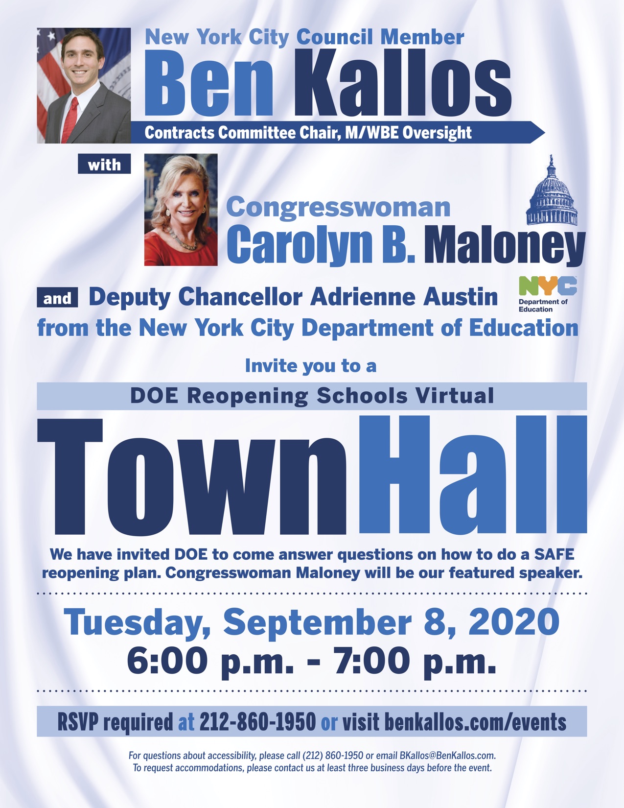 Congresswoman Carolyn Maloney will be the featured guest speaker and we have also invited the Department of Education to answer your questions on how to guarantee a safe reopening plan.