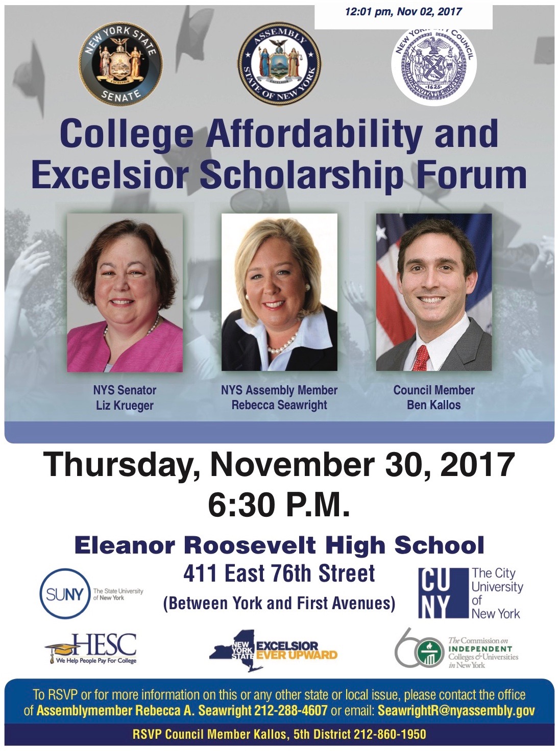 Start Time Thursday, November 30, 2017 - 6:30pm Location Eleanor Roosevelt High School 411 East 76th Street New York, NY 10128 United States