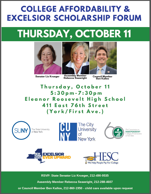 Learn about opportunities to attend college in New York State for free or reduced tuition, including the Excelsior Scholarship. Experts from the Excelsior program, SUNY, CUNY, and more will be on hand to answer your questions and present on the options that exist in New York City for paying for college.
