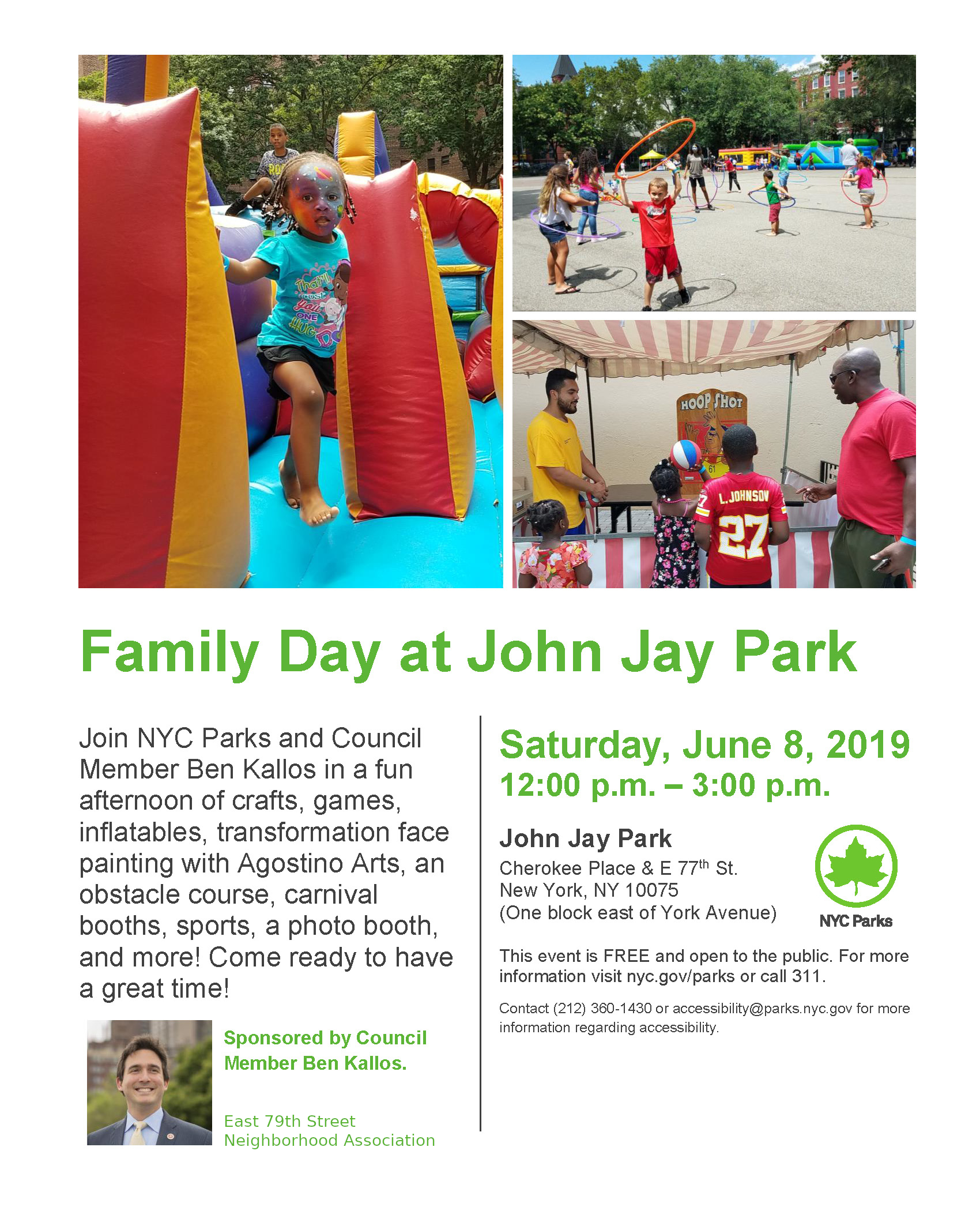 Join NYC Parks and Council Member Ben Kallos in a fun afternoon of crafts, games, inflatables, transformation face painting with Agostino Arts, an obstacle course, carnival booths, sports, a photo booth, and more! Come ready to have a great time!