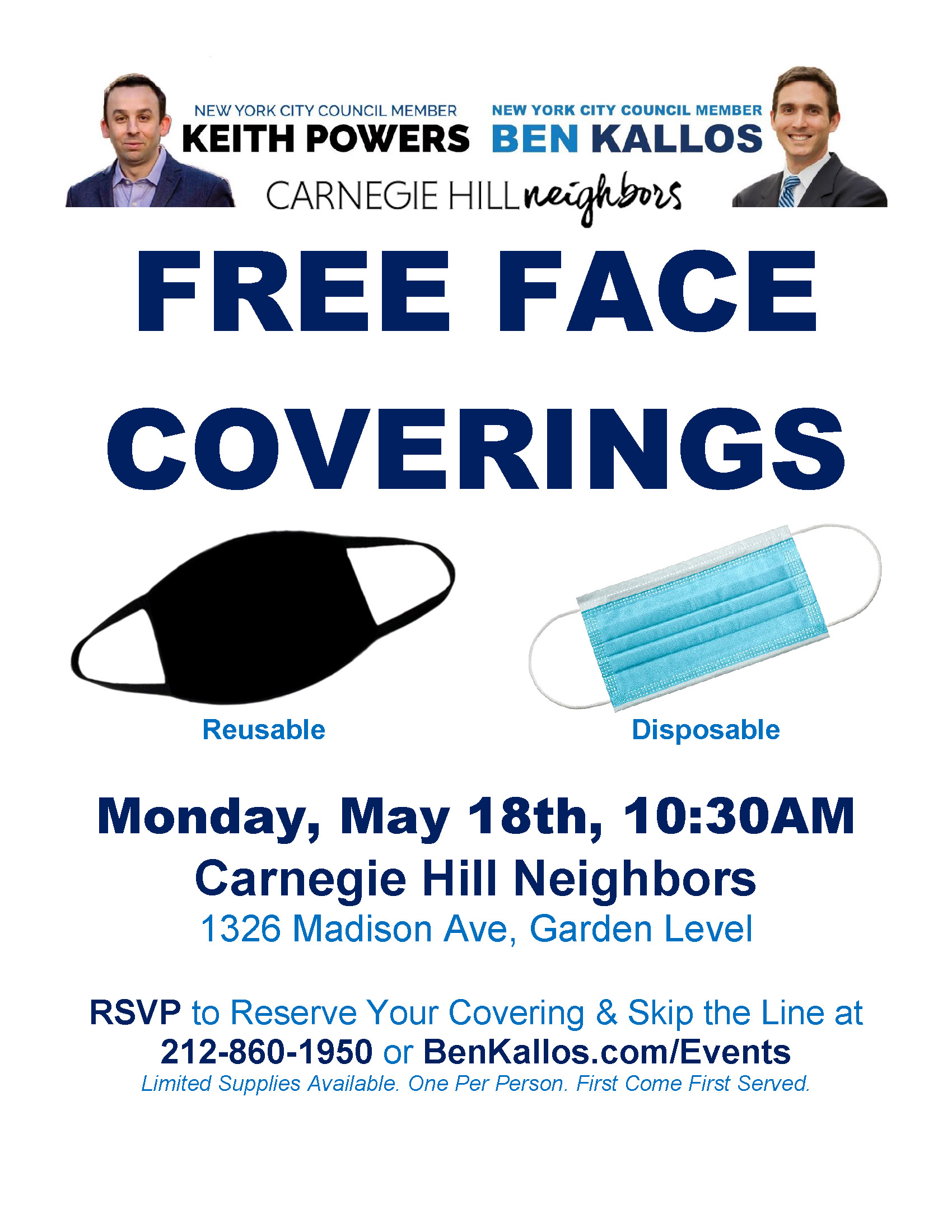 Free Face Mask Distribution with Carnegie Hill Neighbors