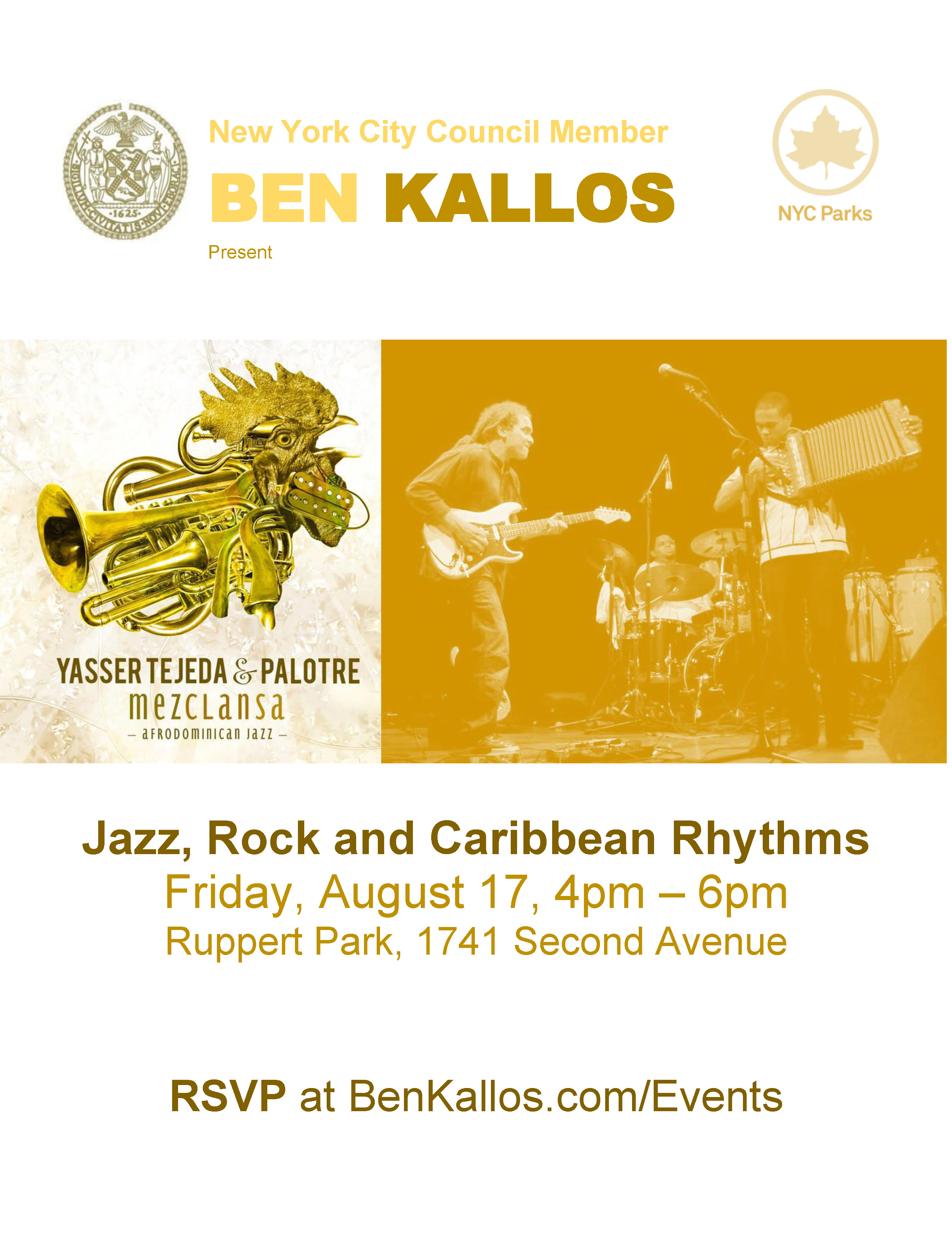 Enjoy a free, live, outdoor concert at Ruppert Park with performances by Yasser Tejada & Palotre, Afro-Dominican fusion group that blends traditional folkloric roots music from Dominican Republic with jazz, rock and Caribbean rhythms.