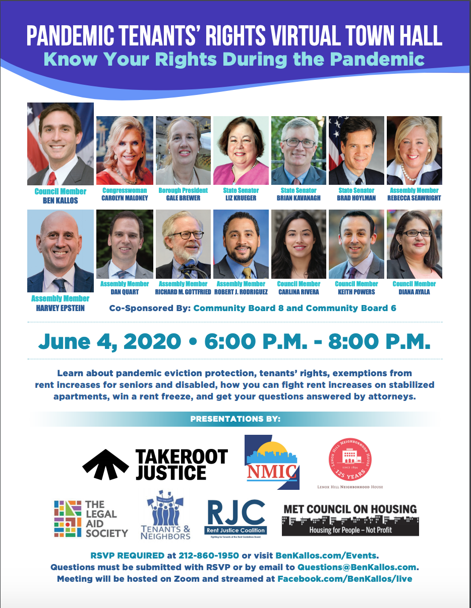 RSVP REQUIRED at 212-860-1950 Questions@BenKallos.com. The meeting will be hosted on Zoom and streamed publicly on Facebook.com/BenKallos/live