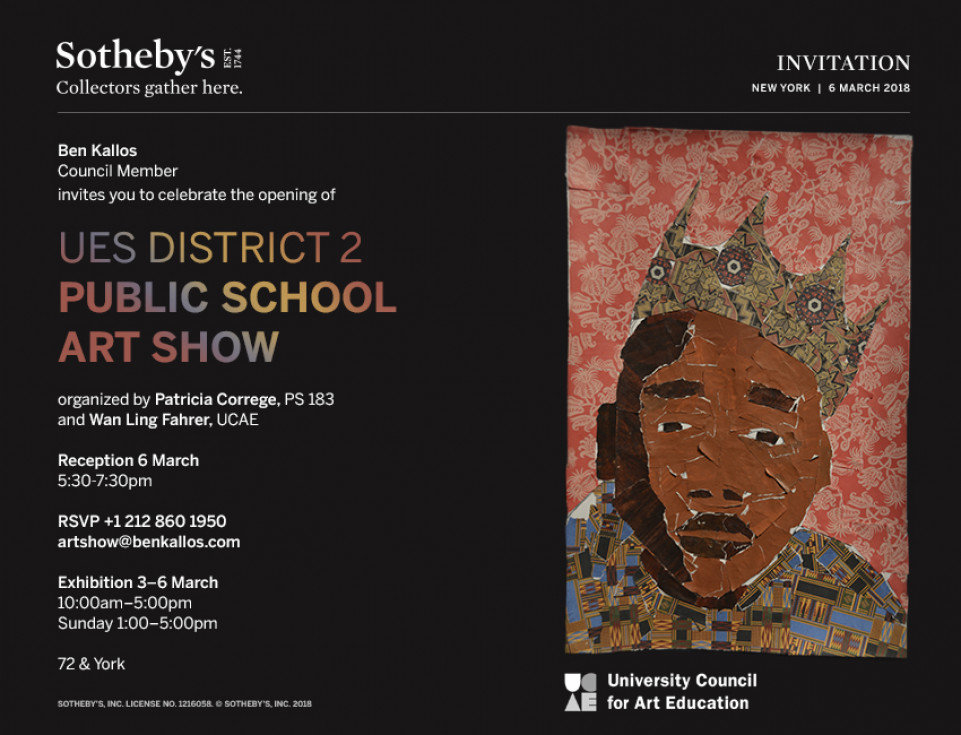 Join us at the renowned auction house Sotheby's to see hundreds of pieces of art from nearly a dozen public schools in the district for our annual art show, in partnership with P.S. 183.