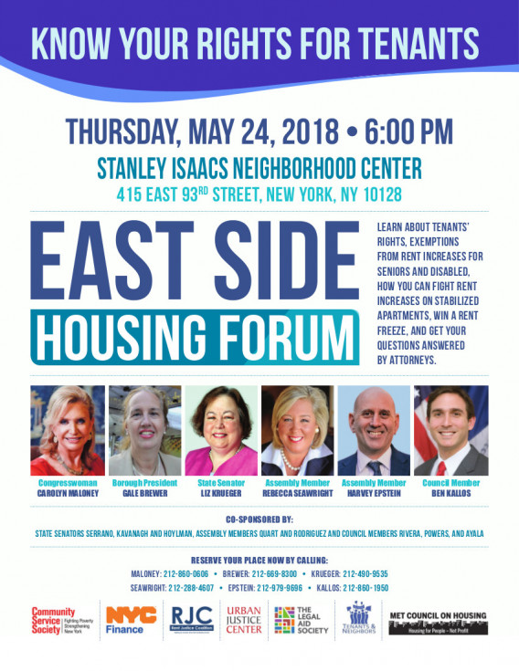 Come and learn about your rights as a tenant, the Senior Citizen and Disabled Rent Increase Exemption, and how to support a rent freeze, with an opportunity to ask your housing questions.