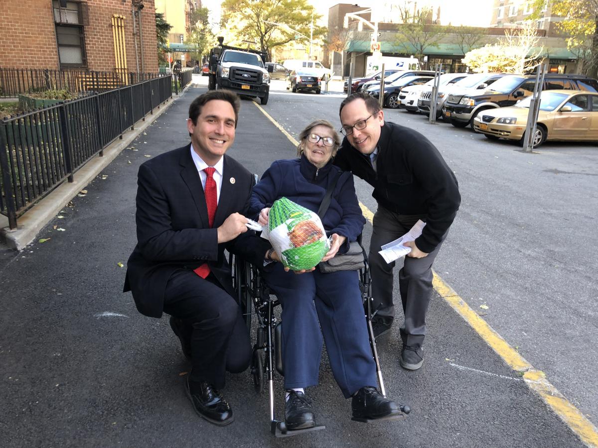 For the fourth consecutive year, my office, with the help of New York Common Pantry, made Thanksgiving a bit better for over 150 families residing in some of the New York City Housing Authority developments in District 5. Thanks to a partnership with New York Common Pantry, and the wonderful leadership at Stanley Isaacs, Holmes Towers and Robbins Plaza, we handed out turkeys to residents signed up ahead of time. If you live in a NYCHA development in Council District 5 and want a turkey next year, call my office next November at 212-860-1950 to get on the list. You can also sign up for additional food benefits by joining the New York Common Pantry.